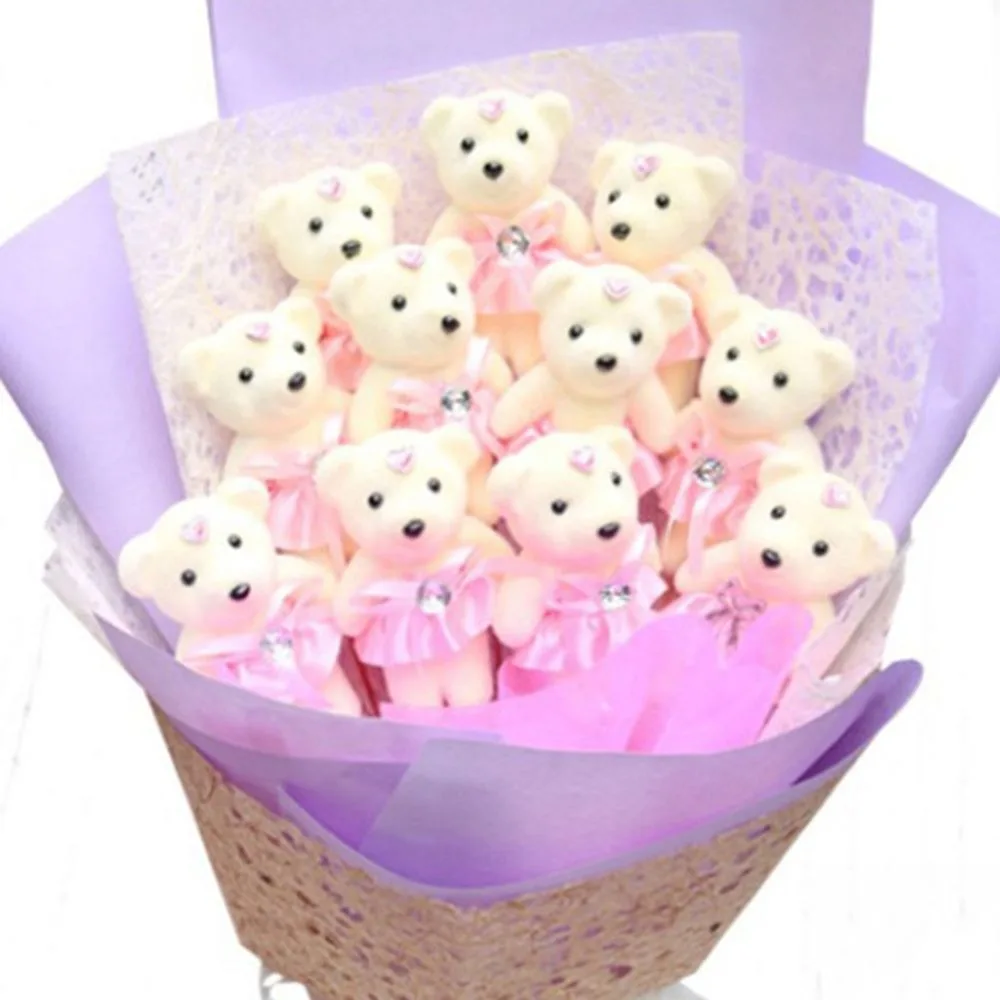 10 PCS Cute Cartoon Small Teddy Bear Birthday Flower Bouquet Bear Couple Bear Wedding Valentine's Day Decoration