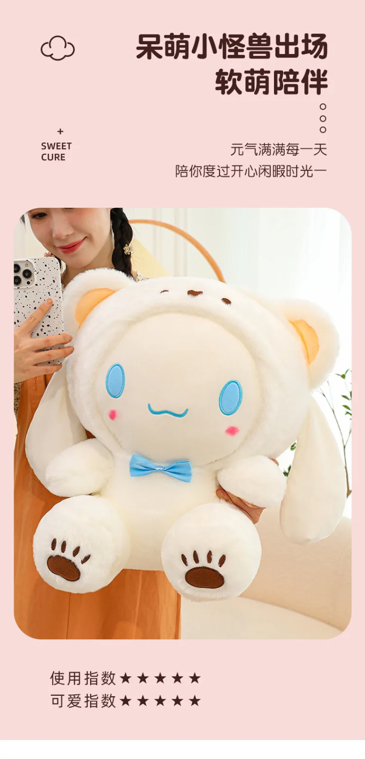 Sanrio Cinnamoroll Dog Cute Transformation into White Bear Kawaii Plush Toy Girl Cloth Doll Plush Birthday Gift for Best Friends